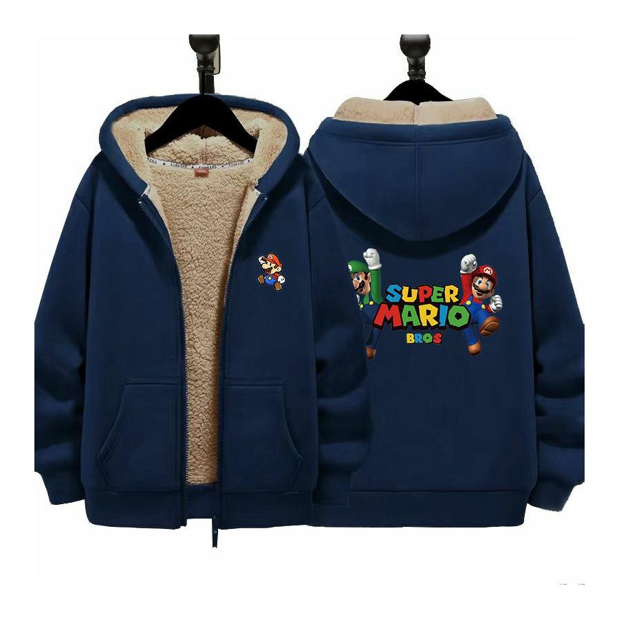 Super Mario Boys Girls Kid's Winter Sherpa Lined Zip Up Sweatshirt Jacket Hoodie